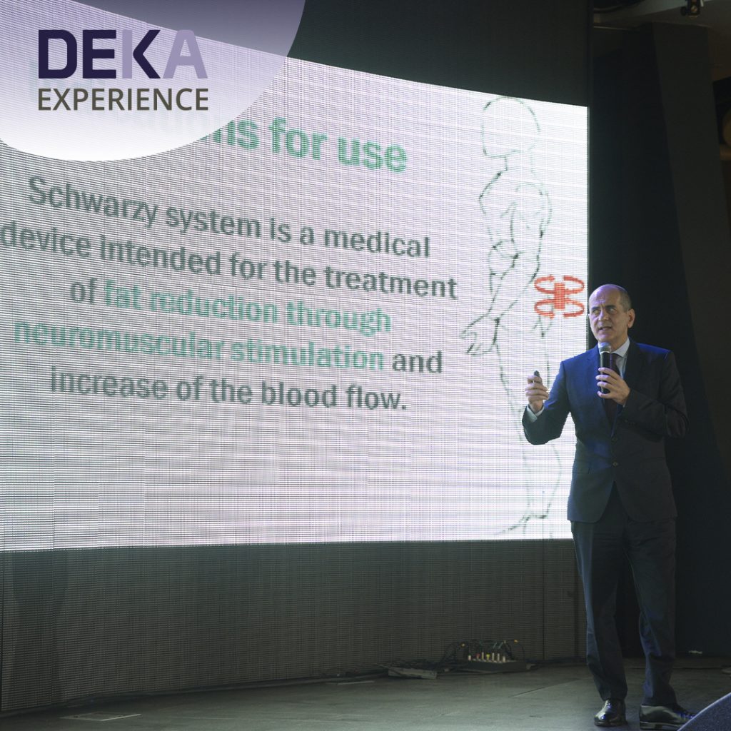 Спикер из Италии Dario Di Fiore рассказал о жизни и достижениях компании DEKA сегодня. Доктор из Италии Irina Poleva показала свои протоколы и прекрасные результаты на аппарате для коррекции фигуры ONDA с технологией COOLWAVES . И конечно обе новинки LUXEA и ONDA были представлены в зале.