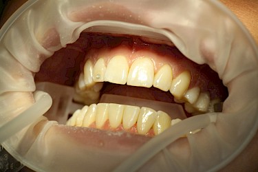 - Эффект от процедуры с использованием щелочного геля и лампы, излучающей свет в зеленом диапазоне спектра, очевиден при любых изменениях цвета эмали, в том числе и при ее тетрациклиновом поражении
