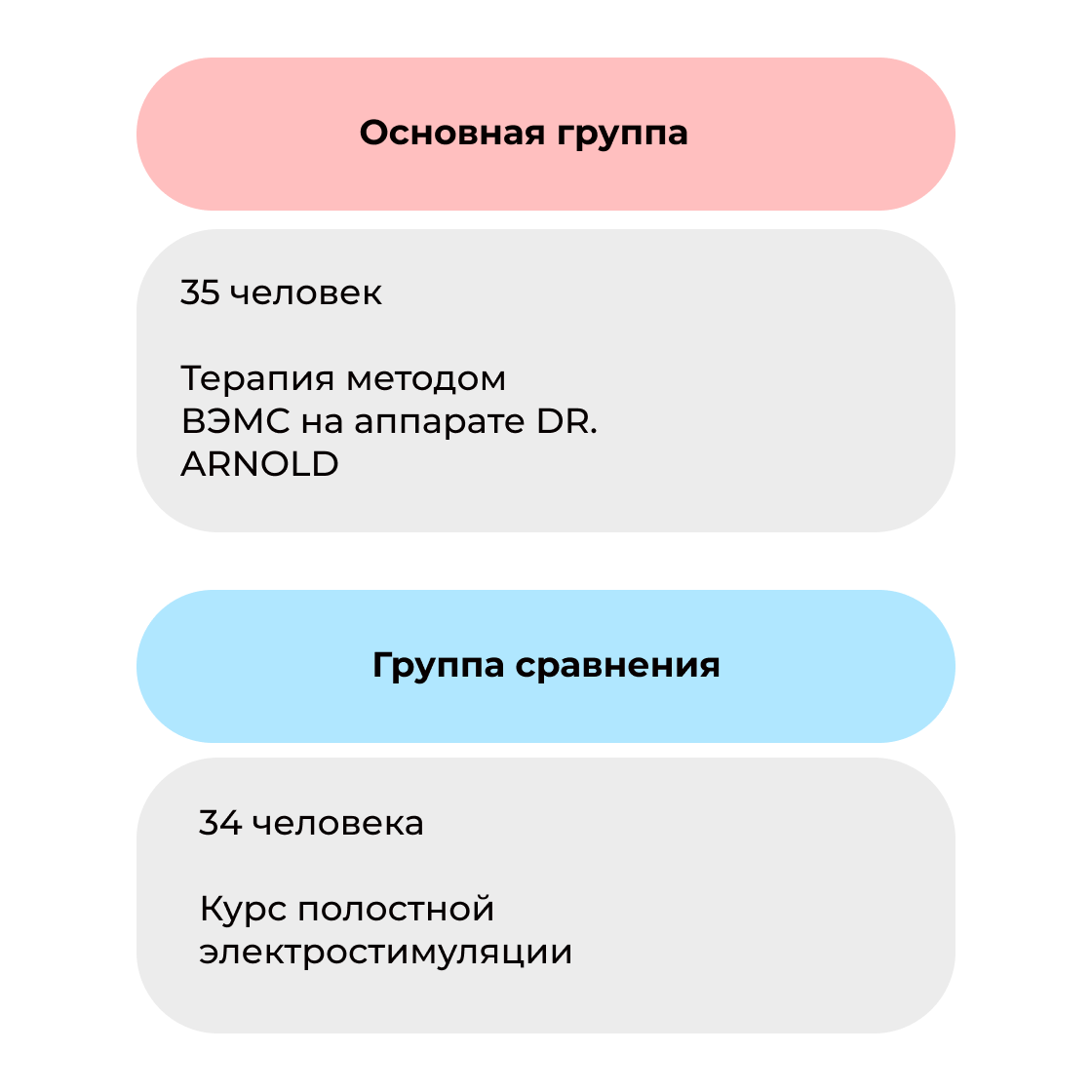 - У пациенток, прошедших терапию на аппарате Dr. Arnold, наблюдалось значительное улучшение сокращения мышц, выносливости и нормализация тонуса.