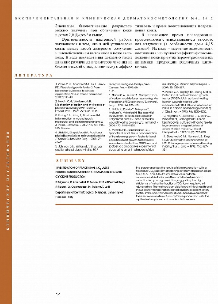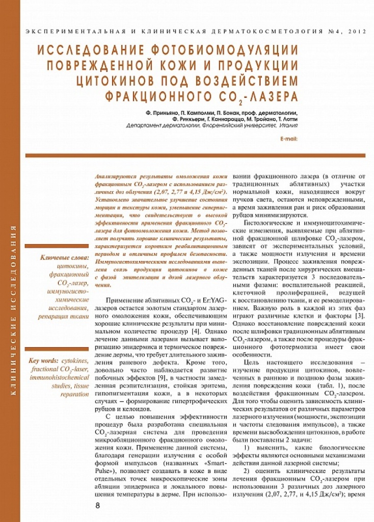 Статья опубликована в журнале «Экспериментальная и клиническая дерматокосметология» №4/2012