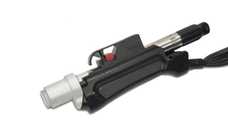 Это манипула со встроенным устройством охлаждения сапфирового цилиндрического наконечника. Такой материал был выбран, поскольку он может переносить всю лазерную энергию, излучаемую системой, на кожу, тем самым уменьшая вышеописанные потери на отражение.