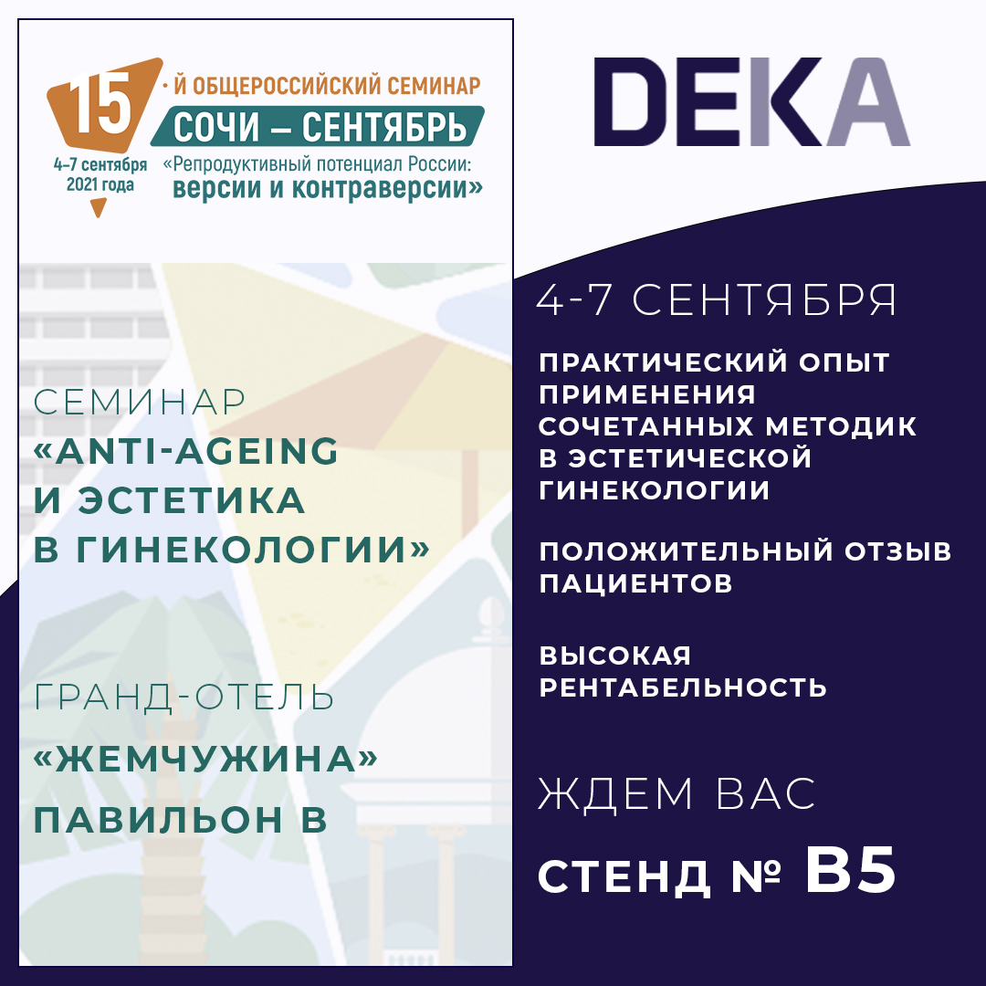 Компания DEKA приглашает посетить XV Общероссийский научно-практический семинар «Репродуктивный потенциал России: версии и контраверсии», который пройдет в городе Сочи с 4 по 7 сентября. Все успели соскучиться по очным специализированным профессиональным мероприятиям, где можно обменяться практическим опытом и мнениями с коллегами.