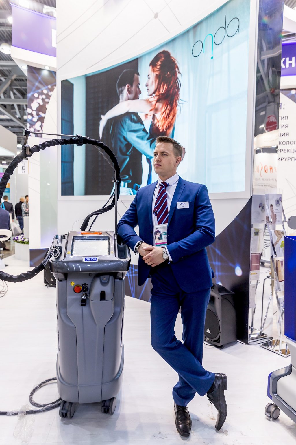 На стенде «DEKA» все желающие смогли поближе ознакомиться с новейшими аппаратами в области эстетической косметологии, позволяющими безболезненно и эффективно удалить волосы, пигментные пятна и новообразования, сделать коррекцию рубцов, растяжек и стрий, провести неаблативное омоложении и лазерную псевдоблефаропластику. Конечно же, мы не могли не похвастаться нашей новинкой – первой в мире микроволновой системой моделирования контуров тела ONDA.