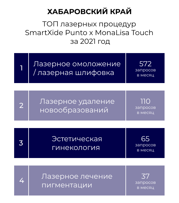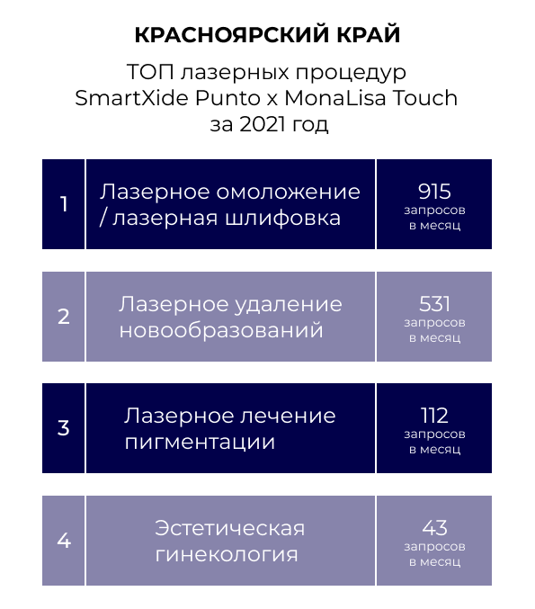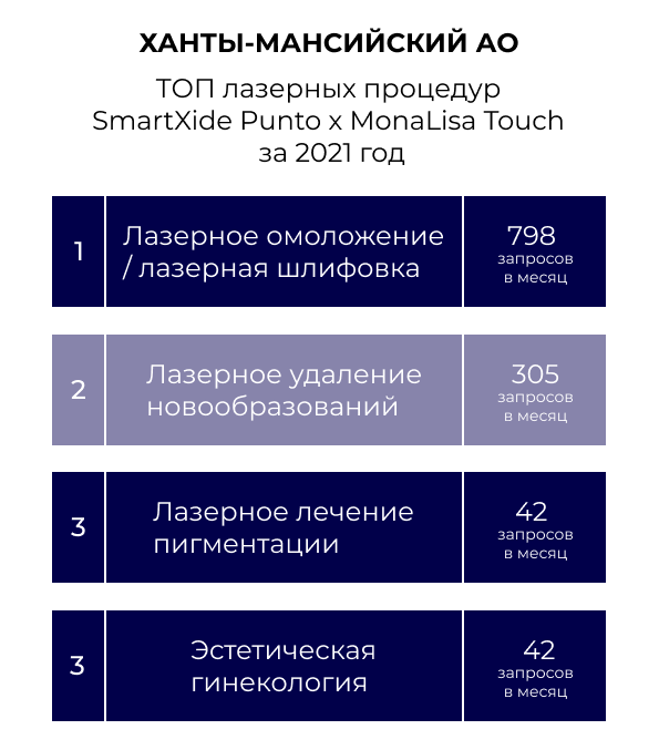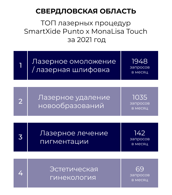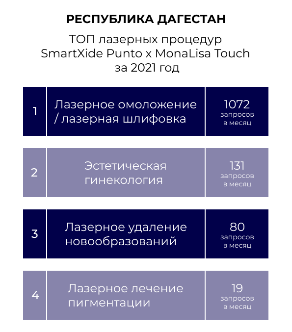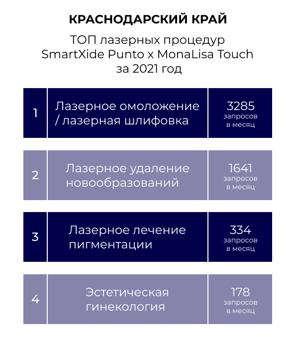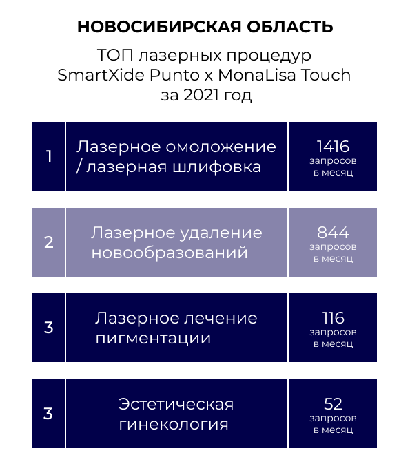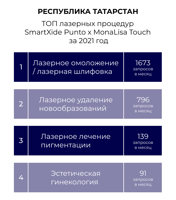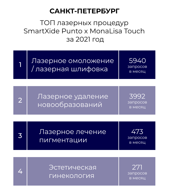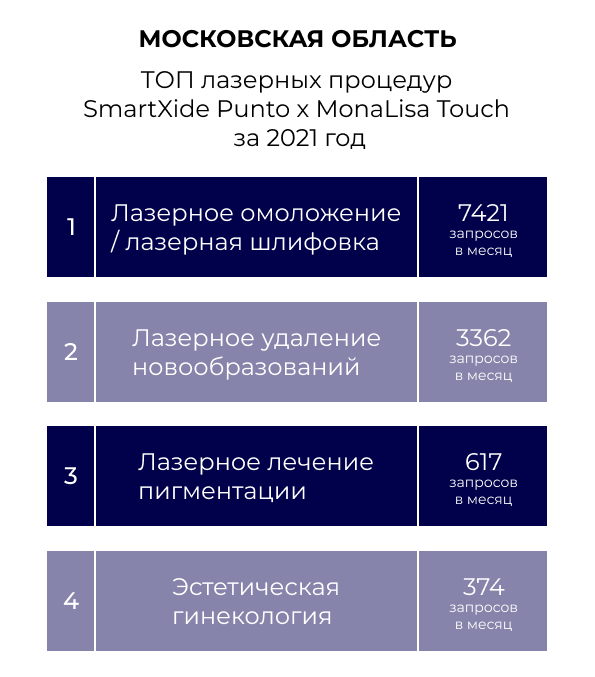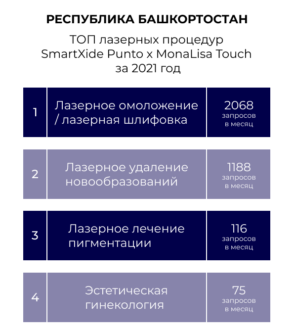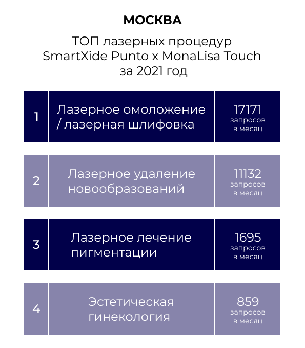 - Статистика запросов в месяц на определенные лазерные процедуры