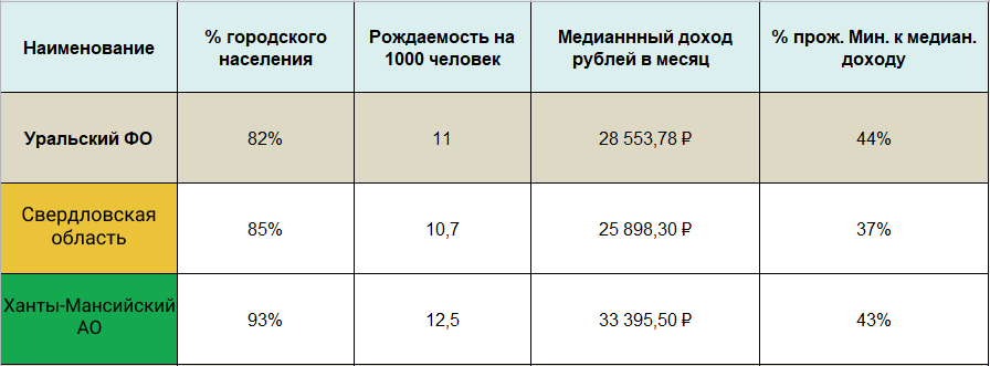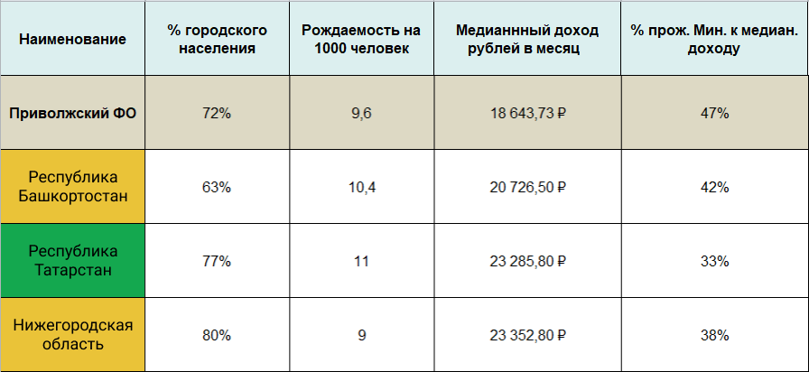 Если 3 значения превышают средние значения Федерального округа, мы считаем регион ПЕРСПЕКТИВНЫМ.