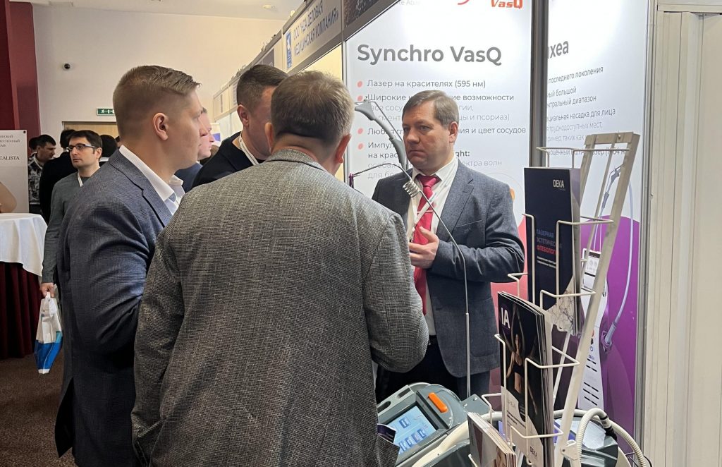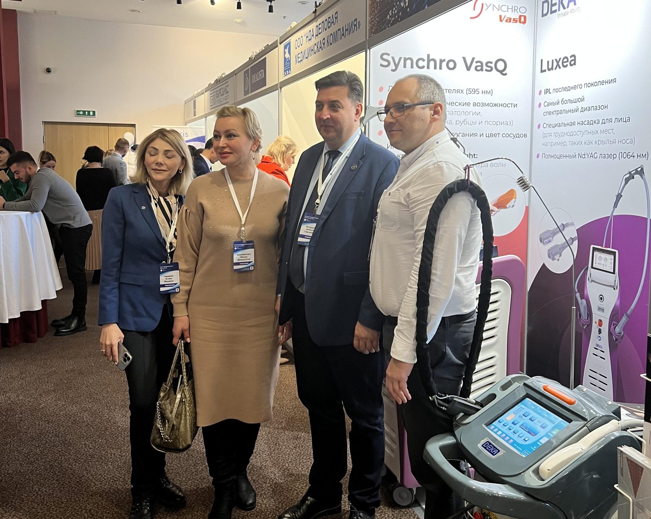 Во второй день работы форума был представлен доклад «Возможности и опыт применения неодимового длинноимпульсного лазера 1064 нм во флебологической практике». Своим опытом работы на аппарате Synchro FT поделился д.м.н., профессор Петриков Алескей Сергеевич, г. Барнаул. После доклада на стенде компании завязалась горячая дискуссия по практическим вопросам применения лазера, обсудили рабочие протоколы. После чего состоялось совместное фотографирование.
