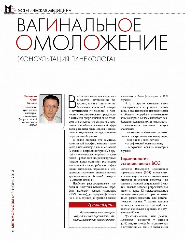Автор статьи: Маракшин Юрий Кузьмич, гинеколог, врач высшей категории, главный врач Центра лазерной косметологии SONO