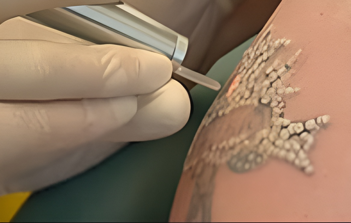 Эрбиевый лазер генерирует излучение с длиной волны 2940 нм, которое идеально соответствует пику поглощения воды. Это обеспечивает максимально эффективную абляцию эпидермиса и верхних слоев дермы с минимальной термической нагрузкой на окружающие ткани.